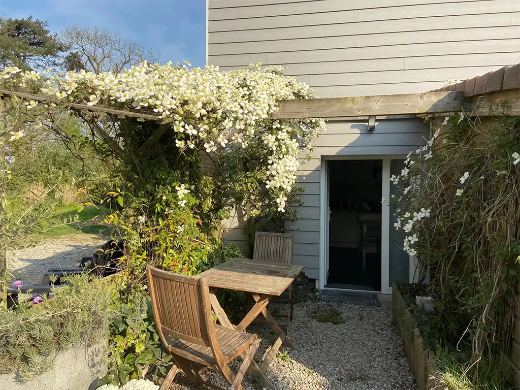 Un salon avec lit 2 personnes (matelas neuf et de qualité), penderie, télévision